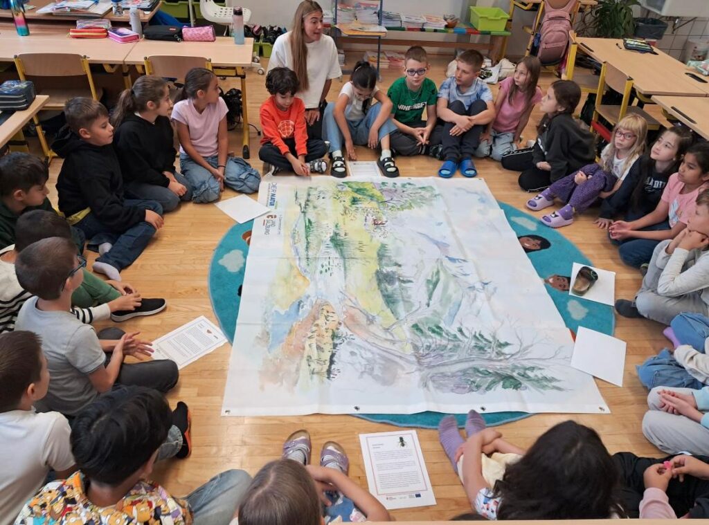 Die Kinder erfuhren, wie wir natürliche Ressourcen nutzen und wie Eingriffe – zum Beispiel durch Landwirtschaft, Bebauung oder Energiegewinnung – die Natur beeinflussen. Gemeinsam überlegten sie, wie die Natur geschützt werden kann und welche Nutzungskonflikte dabei entstehen. In einer Ideenwerkstatt entwickelten die Schülerinnen und Schüler eigene Vorschläge, wie sie ihre Umwelt aktiv gestalten und schützen können.